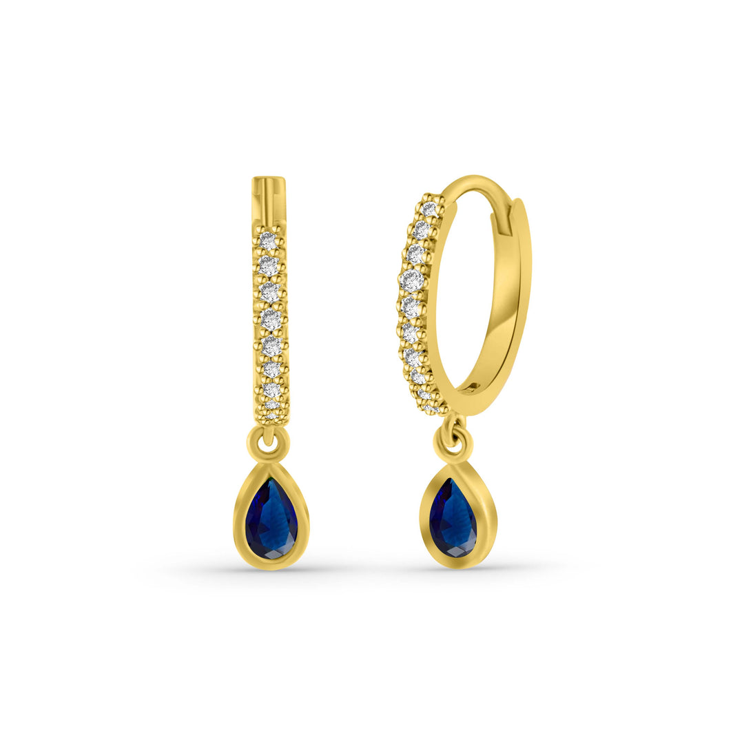 זוג עגילי חישוקים מזהב 14 קראט משובצים באבני ספיר ויהלומים