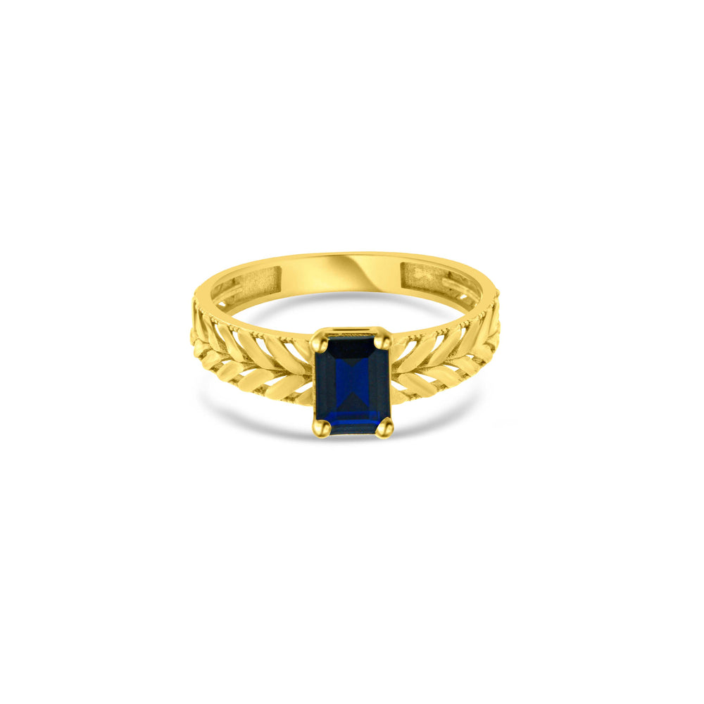 טבעת עלים מזהב צהוב 14 קראט משובצת אבן מלבנית מרכזית