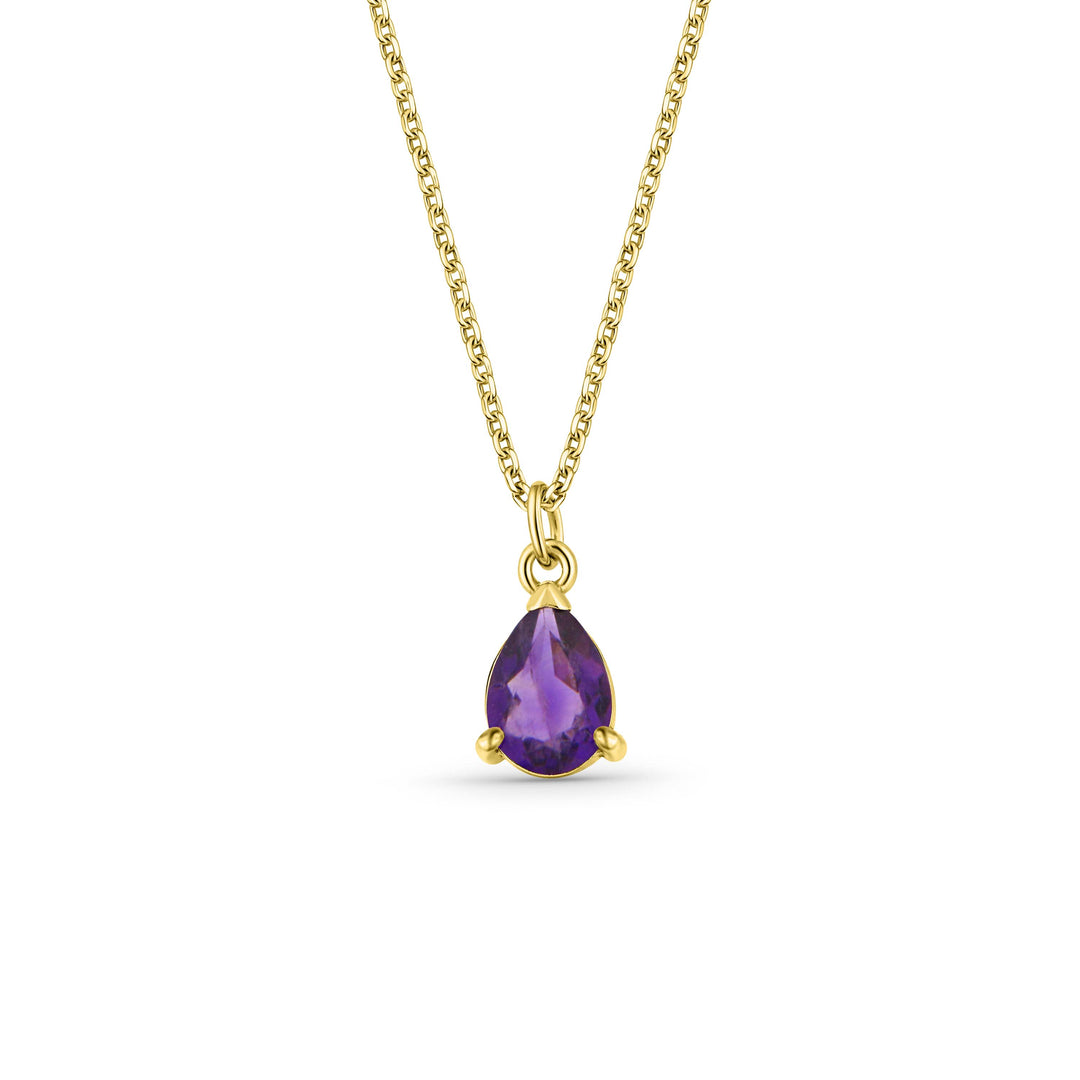 שרשרת ותליון סוליטר טיפה מזהב 14 קראט משובץ באבן אמטיסט סגולה