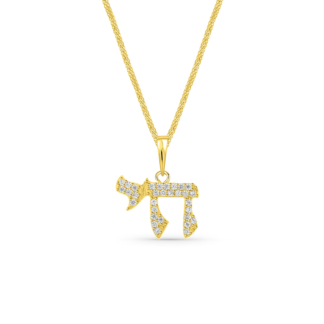 שרשרת מזהב 14 קראט עם תליון בעיצוב חמסה משובצת אבנים