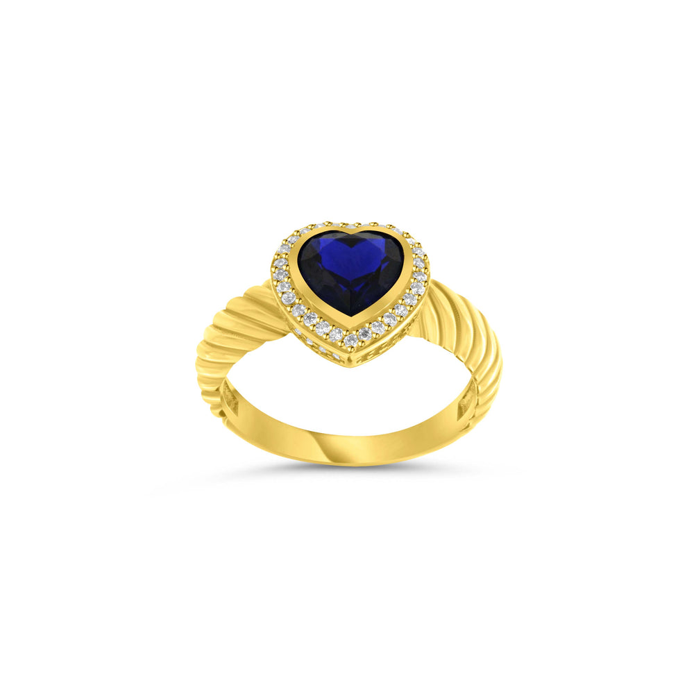 טבעת לב מזהב צהוב 14 קראט משובצת אבן כחולה
