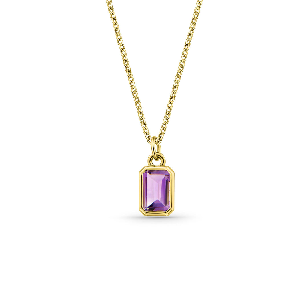 שרשרת ותליון סוליטר מזהב 14 קראט משובץ באבן אמטיסט סגולה מלבנית
