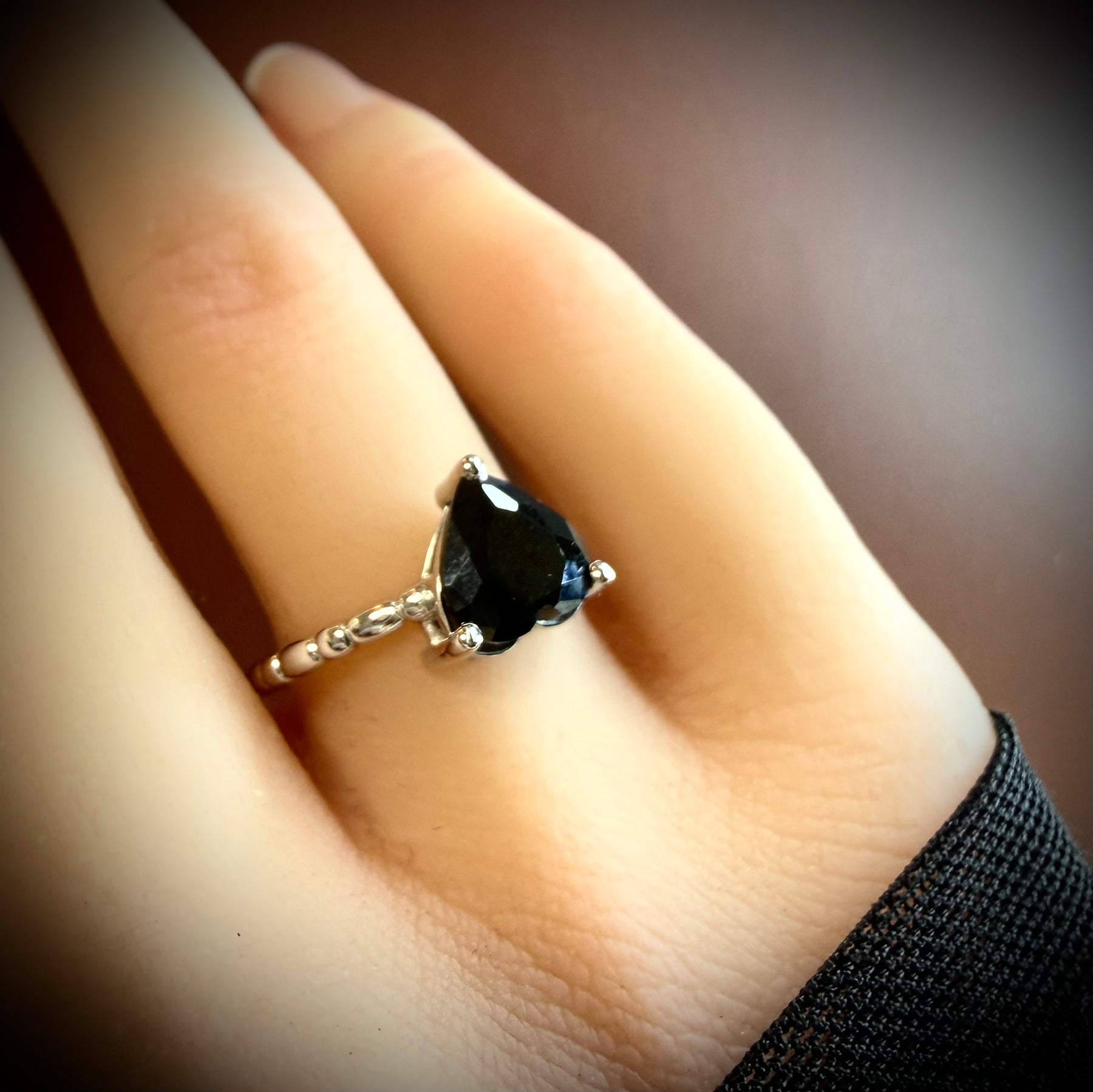 טבעת סוליטר מזהב 14 קראט משובצת אבן לב שחורה