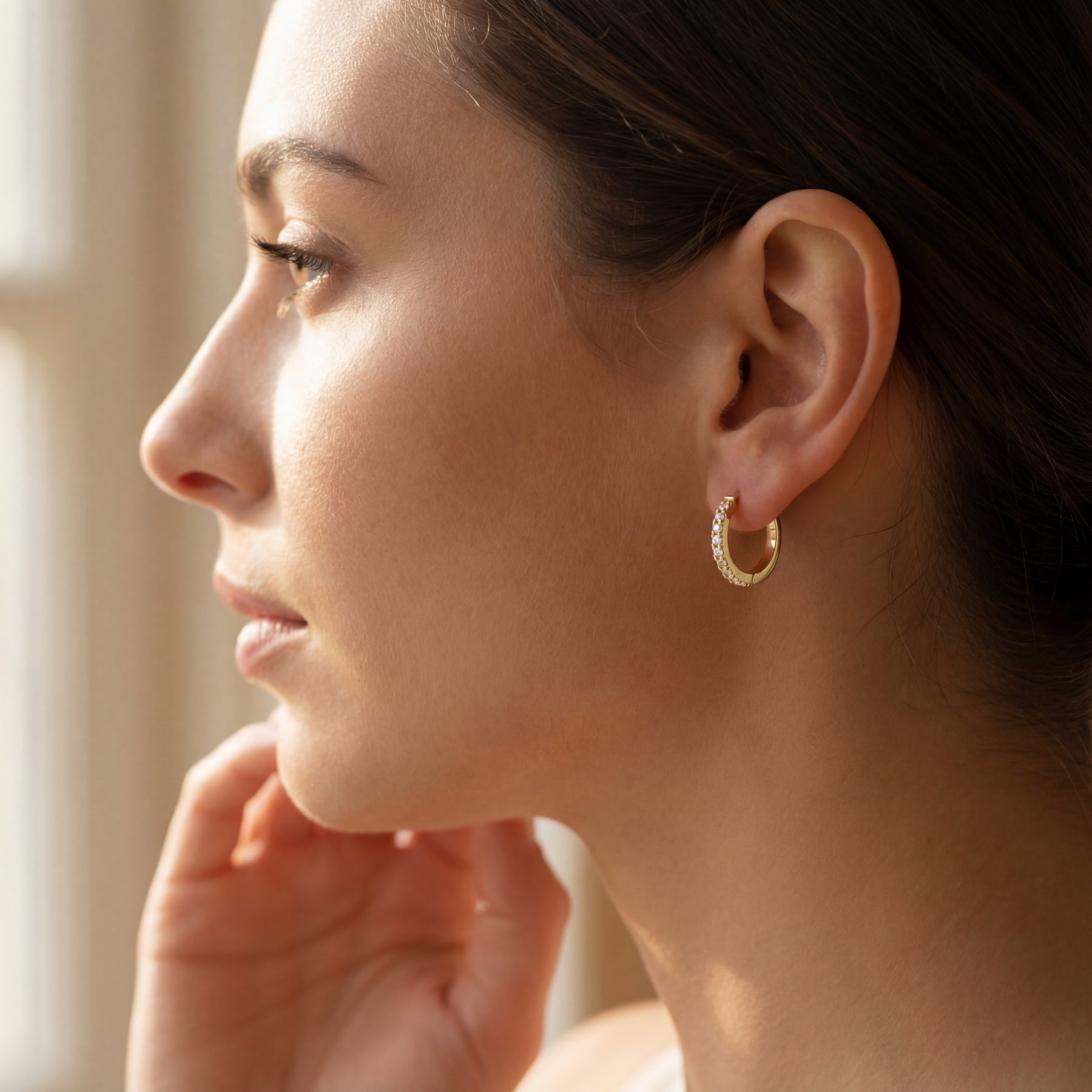 זוג עגילי חישוקים מזהב משובצים ביהלומים נוצצים