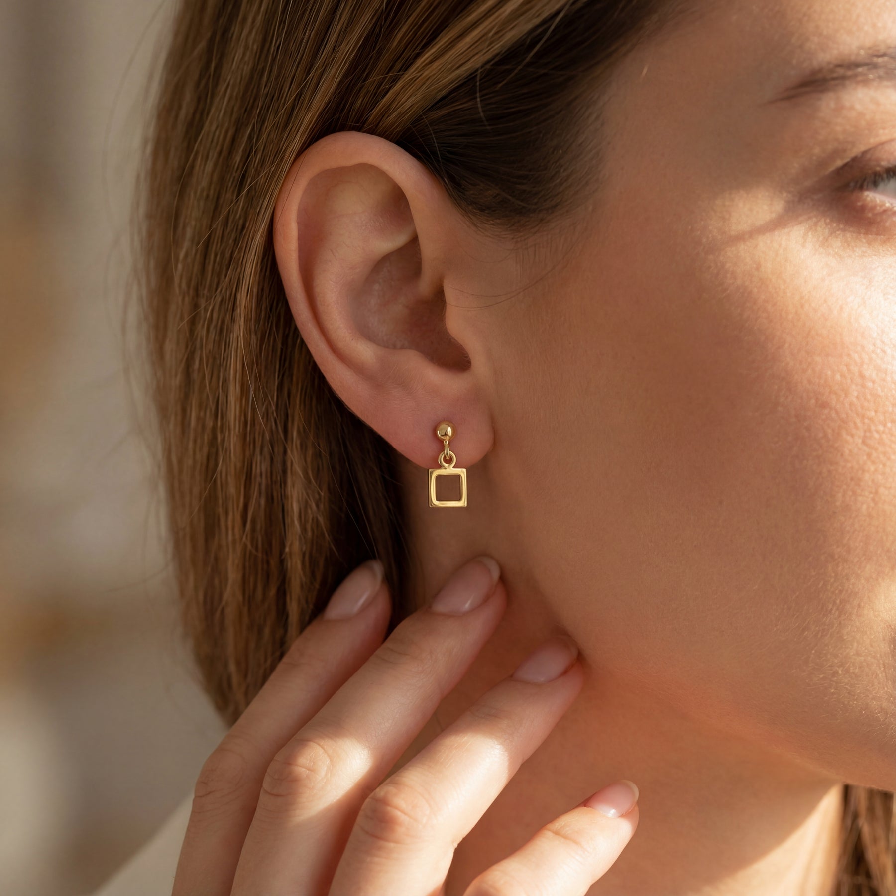 זוג עגילים צמודים לאוזן עם תליונים מרובעים תלויים