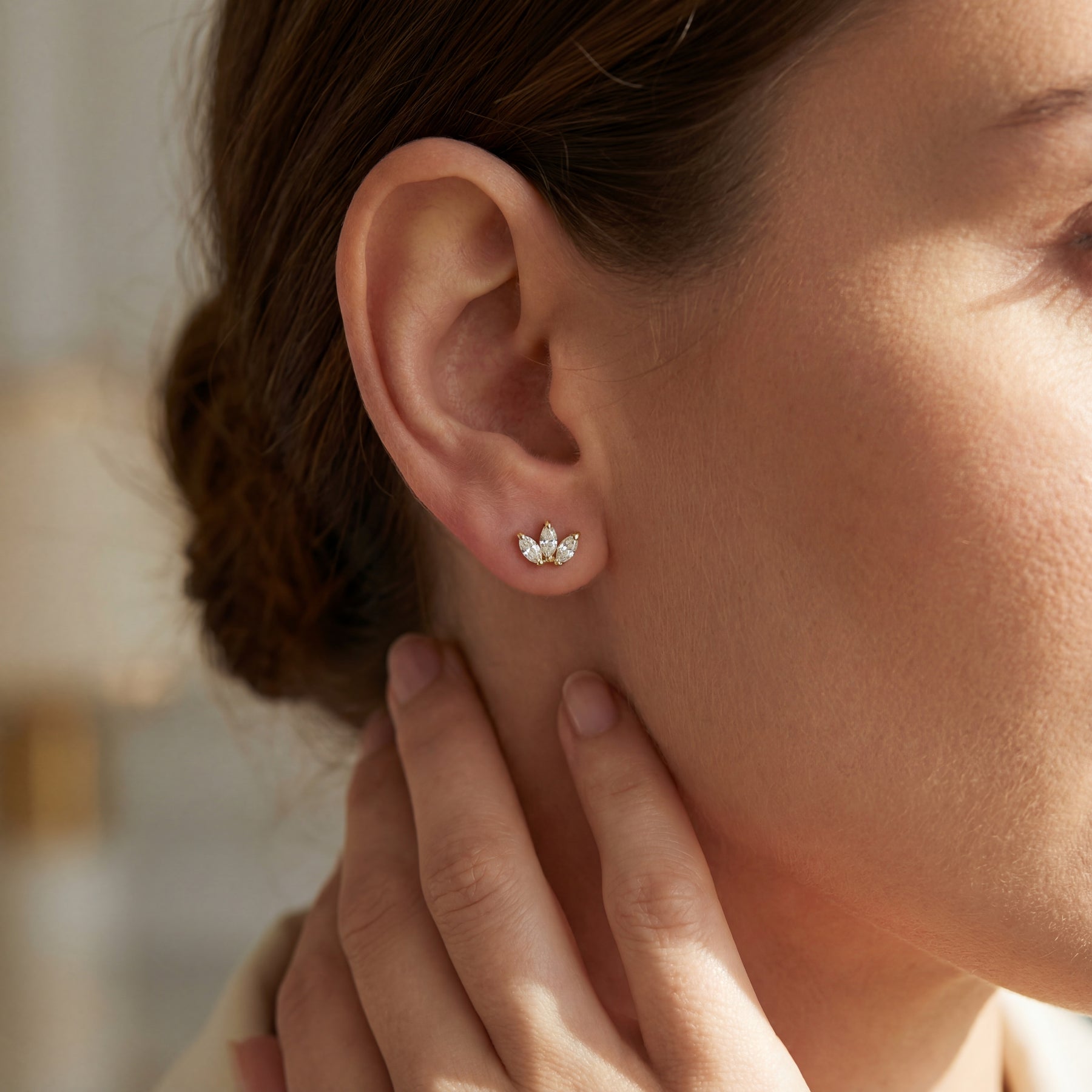 זוג עגילי זהב בעיצוב לוטוס משובצים אבני מרקיזה נוצצות