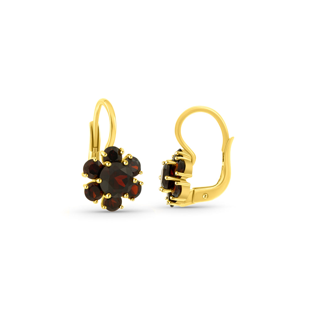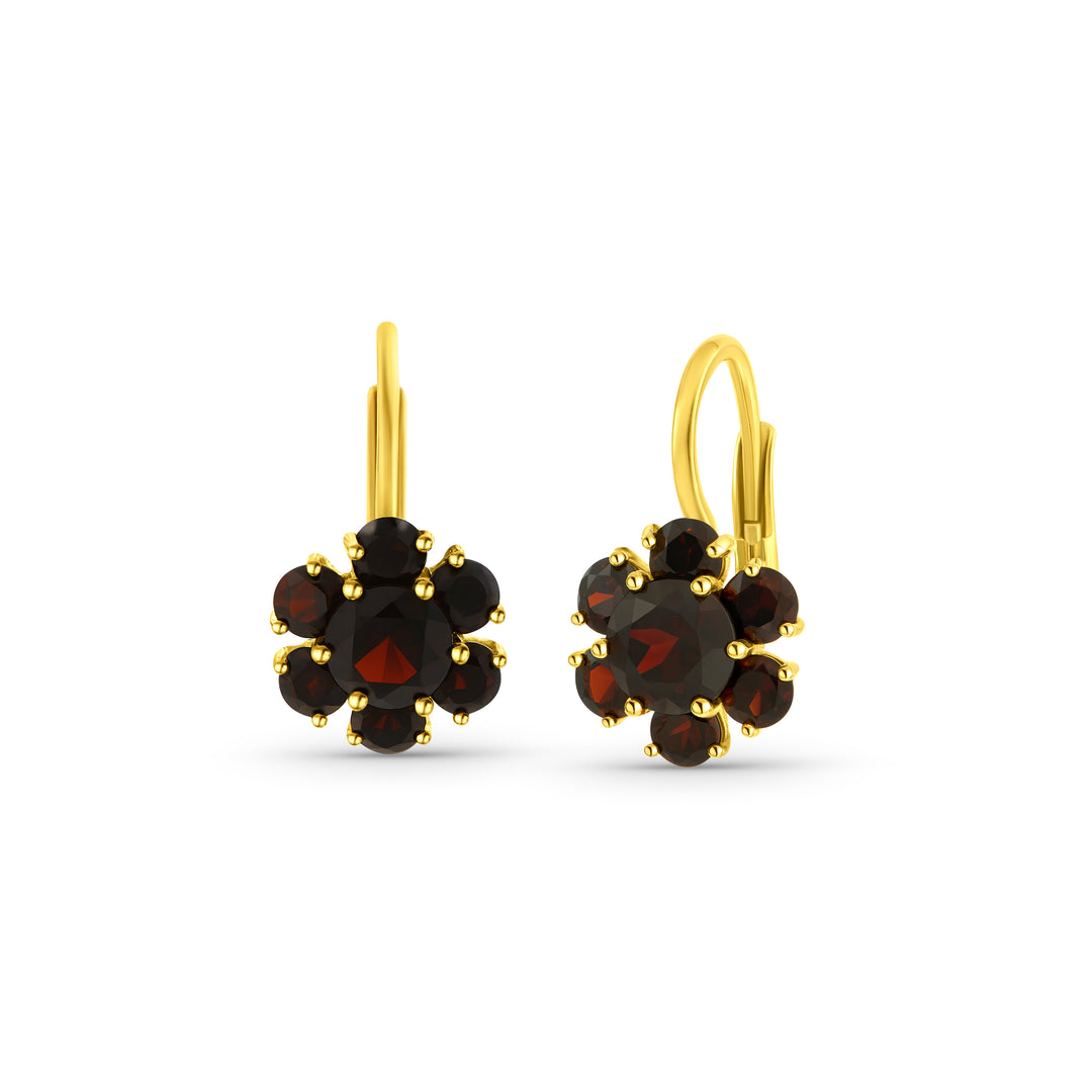 זוג עגילי וינטג' תלויים מזהב צהוב 14 קראט בעיצוב פרחים משובצים באבני גרנט