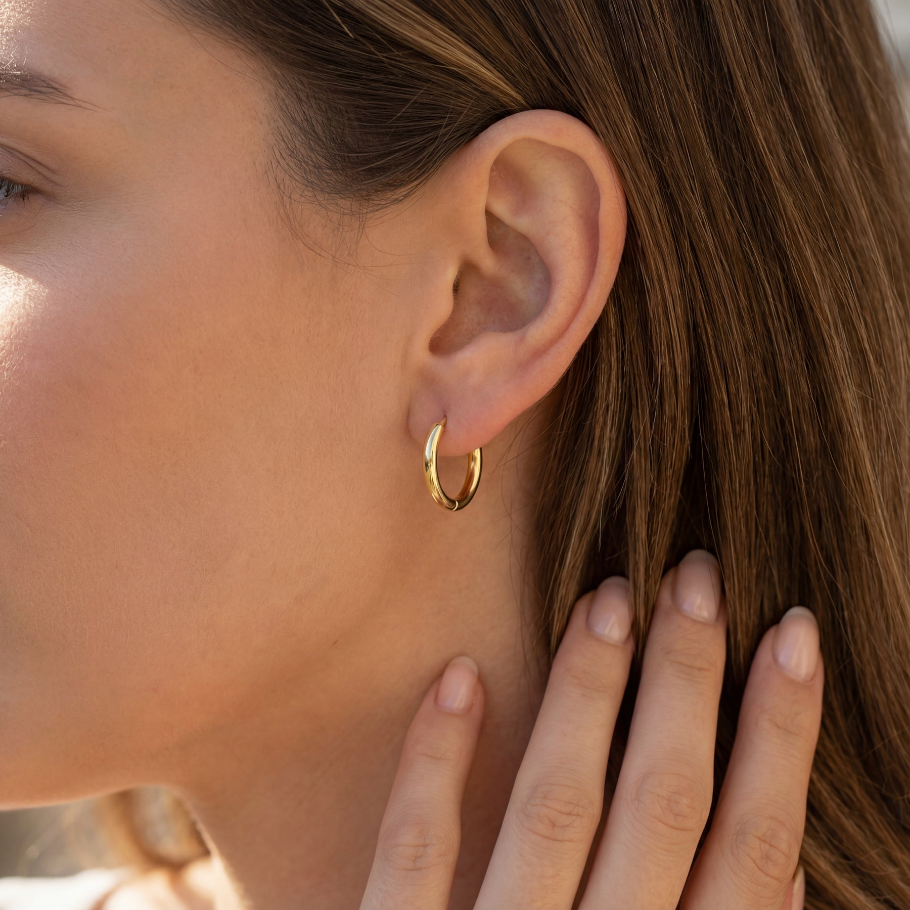 זוג עגילי חישוקים עבים מזהב בגימור מבריק ונוצץ