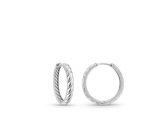 זוג עגילי חישוקים מזהב לבן עם טקסוטרת חריטות עליהם