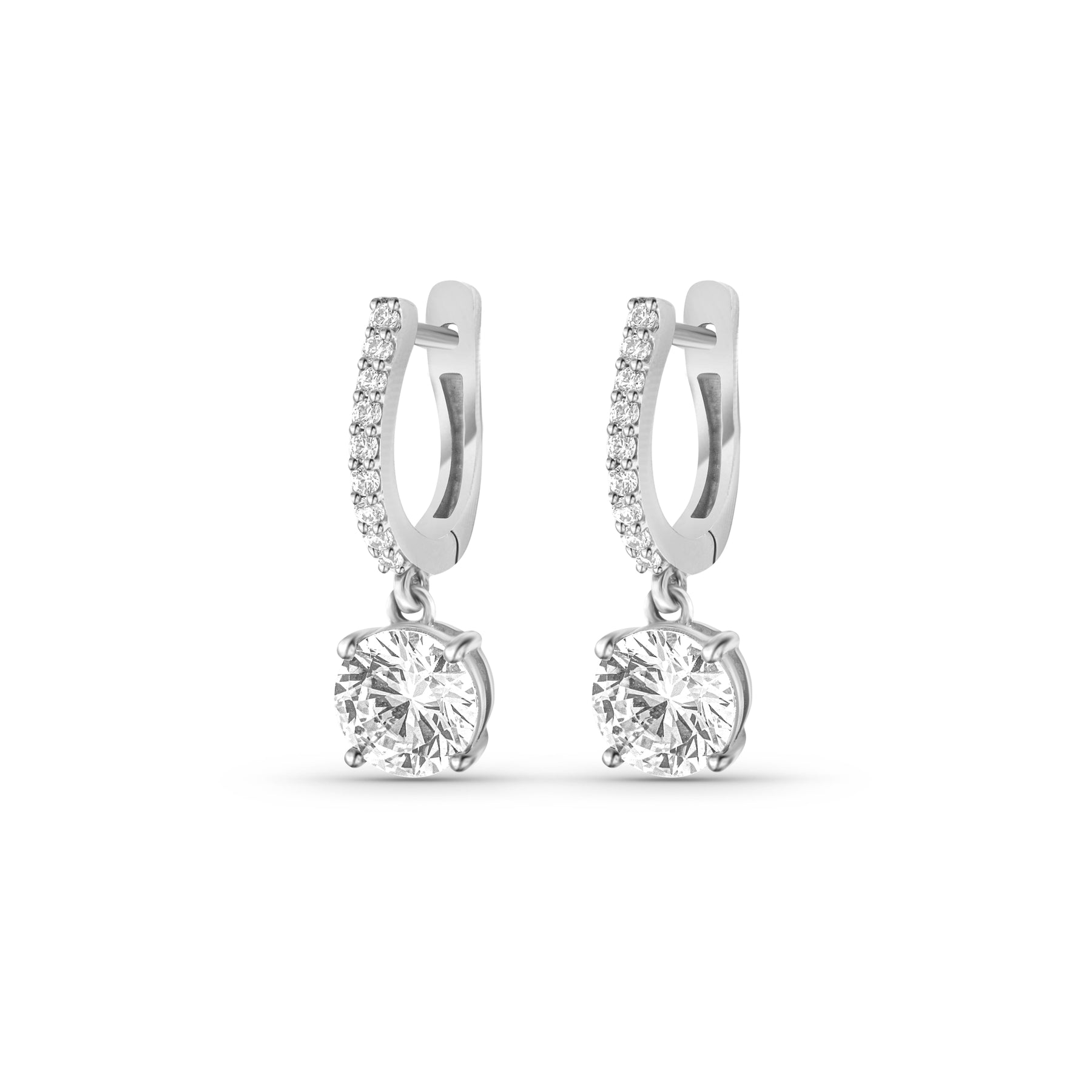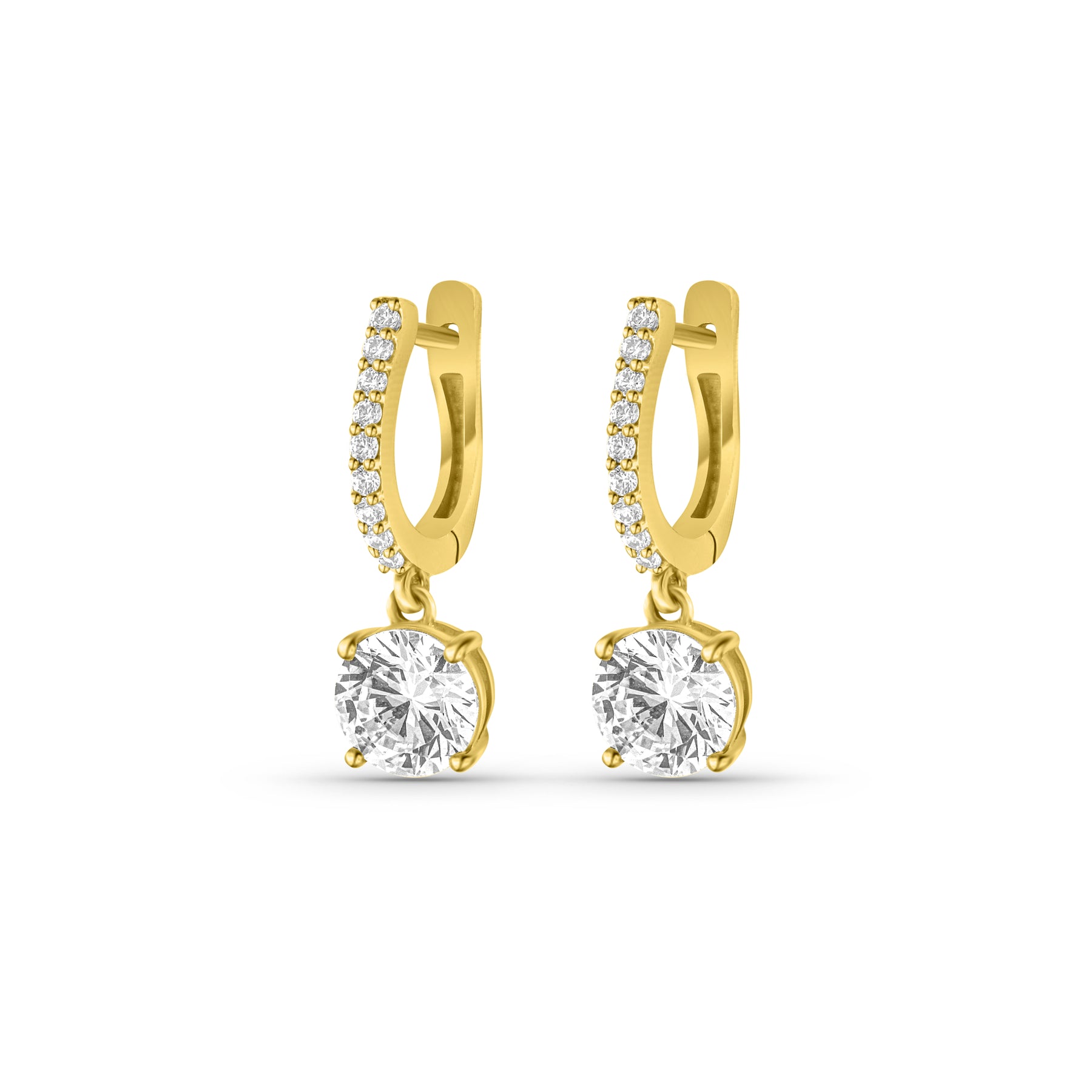 זוג עגילים תלויים מזהב עם תליון סוליטר עגול משובצים באבנים נוצצות