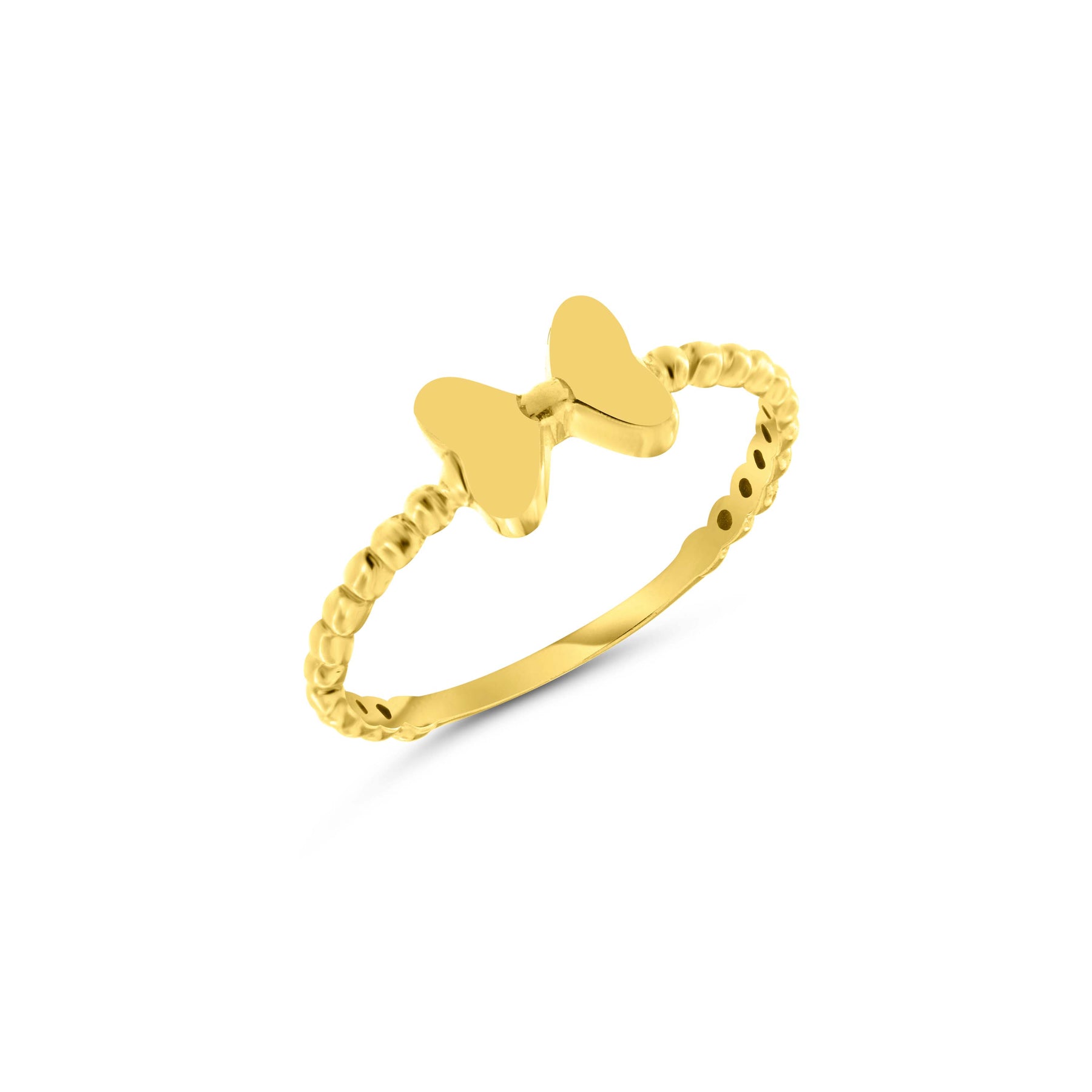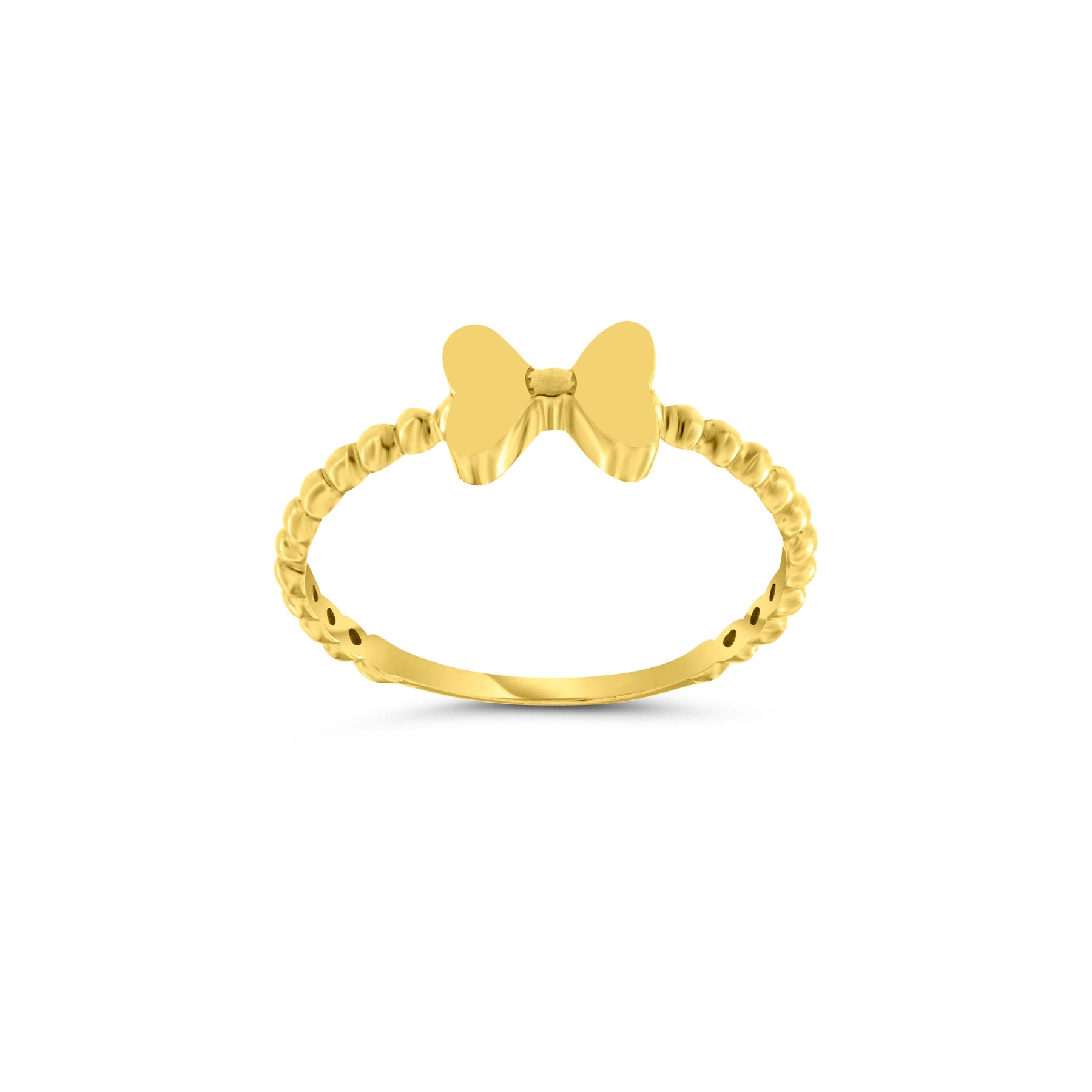 טבעת עדינה מזהב בעיצוב פפיון מבריק וכדורים קטנים
