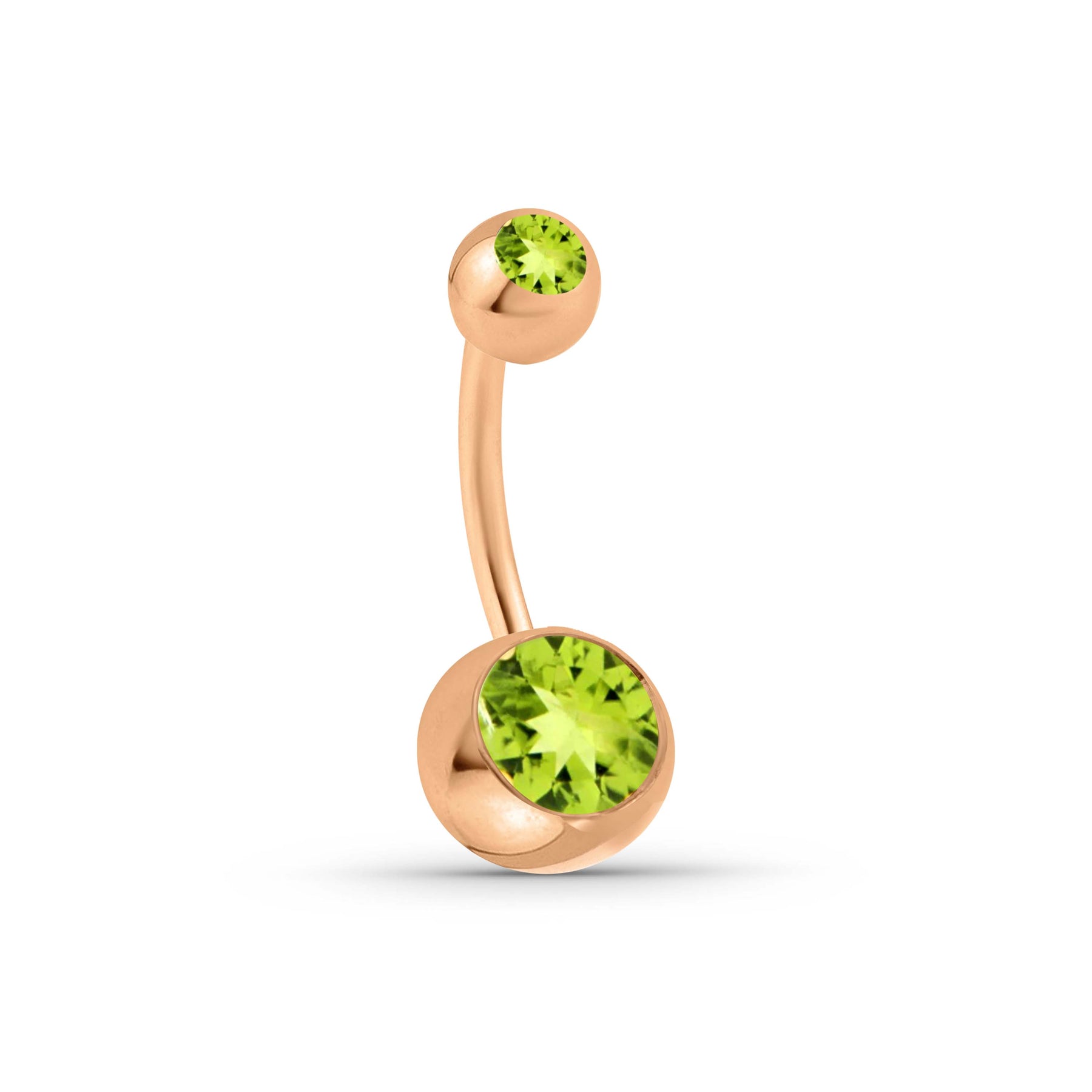 עגיל לטבור מזהב 14 קראט משובץ באבני פרידוט ירוקות