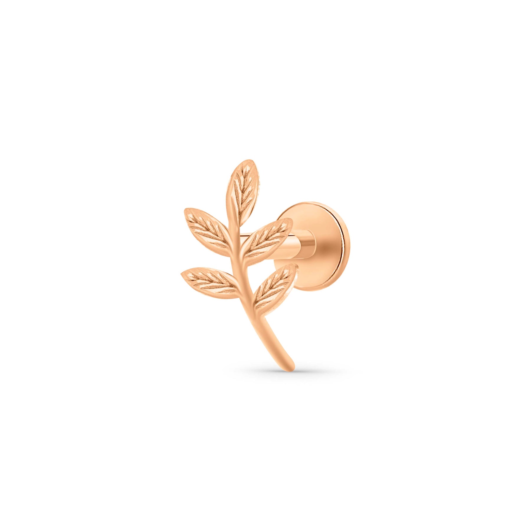 עגיל פירסינג לברט צמוד מזהב 14 קראט בעיצוב עלה