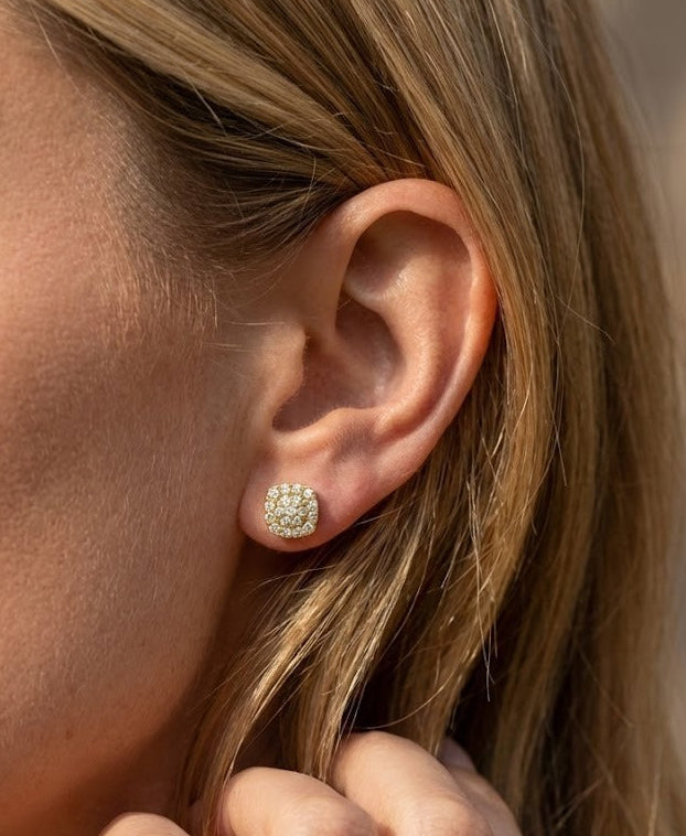 זוג עגילי יהלומים צמודים מזהב צהוב 14 קראט קלאסיים מרובעים